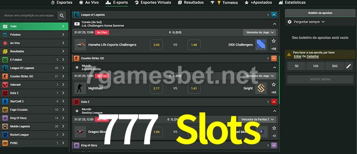 O 777 Slots oferece uma grande seleção de opções de apostas em e-sports com probabilidades competitivas